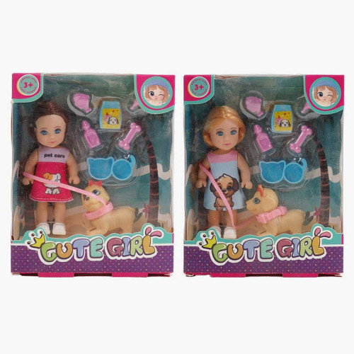 Кукла GN 686 A1 (192/2) 2 вида, высота: 11,5 см, аксессуары, собачка, съемная одежда, в коробке