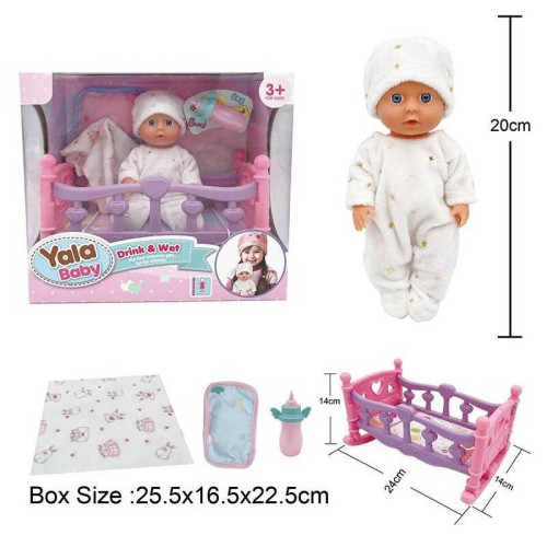 Пупс YL 2420 A-E (24) пьет из бутылочки, ходит на горшок, кровать, аксессуары, высота 20 см, в коробке