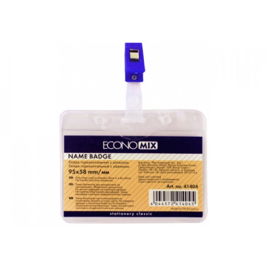 Бейдж горизонтальний з затиском Economix, PVC, розмір 95х58 мм