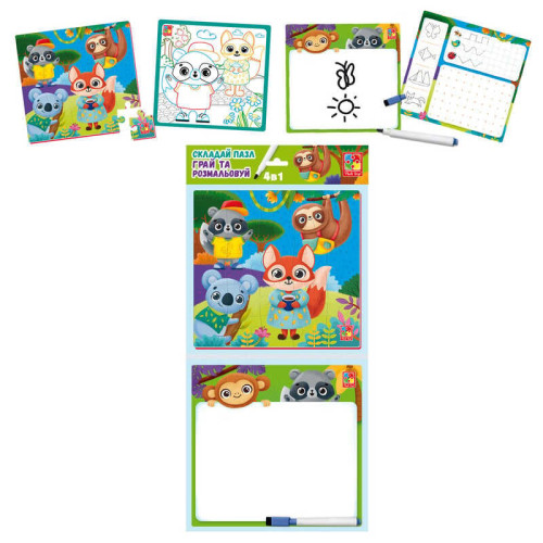 гр Игра настольная "Набор 4в1. Зверюшки" (укр) VT2002-03 (20) "Vladi Toys"