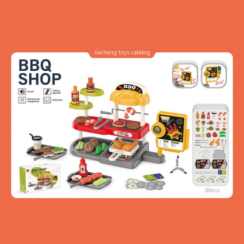 Гриль 668-145 (36) 56 элементов, звуковые эффекты кассы, грили, фритюр, подносы, монеты, купюры, продукты, баночки с соусами, в коробке