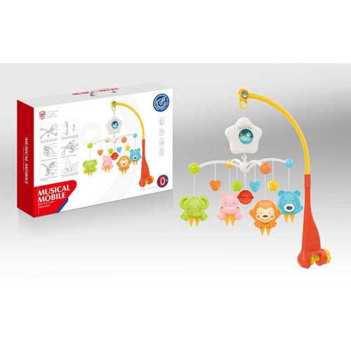 Карусель HE 0308 (24/2) мелодии, световая проекция, фигурки животных, погремушка, в коробке