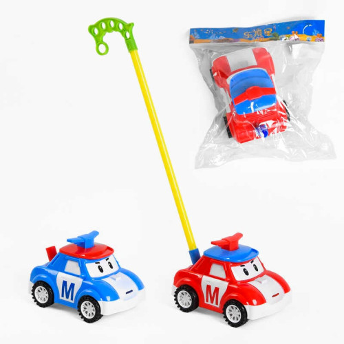Каталка 198-20 (72/2) "Машинка" 2 цвета, на палки, с пискавкой, в пакете