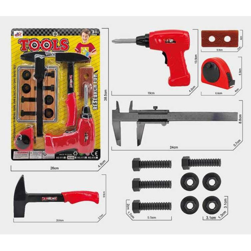 Набор инструментов 1053 (72/2) дрель, молоток, штангенциркуль, рулетка, на листе
