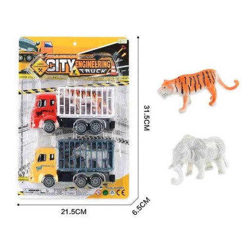 Набор машин YC 536 (96/2) 2 штуки, грузовые, клетки с животными, инерция, на листе