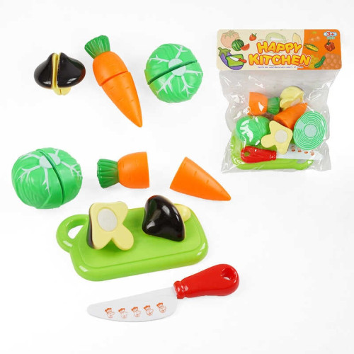 Продукты на липучках 626-9 (288/2) доска для нарезки, гриб, капуста, морковь, нож, в пакете