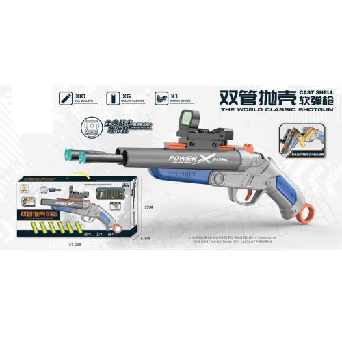 Ружье 832 (24) механический принцип работы, длина 38 см, 2 дула, 10 мягких патронов, 6 гильз, прицел, в коробке