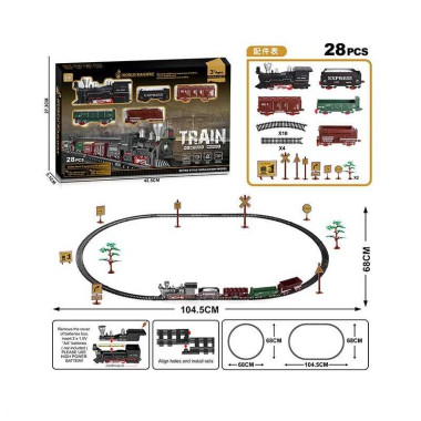 Железная дорога 9299-86(48)28 элементов, 5 вагонов длиной 54 см, дорога 104х68 см, подсветка, звук-беззвучный режим, движение вперед, на батарейках, в коробке<b>[перемещение - 2 - sklad17]</b>