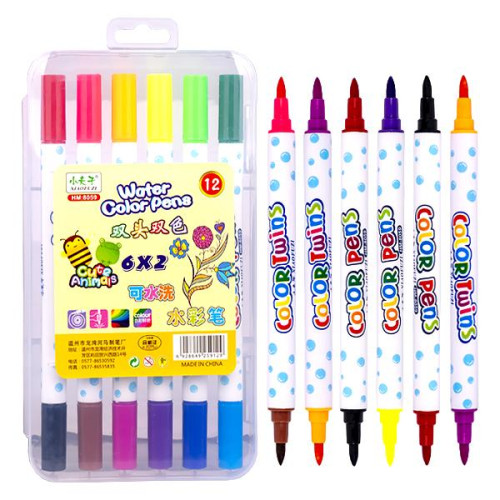 Фломастер двоколірний 6штук 12кольорів 8059-12 в пластиковому боксі