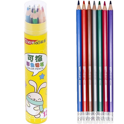 Олівець 12 кольорів у тубусі 6001 з гумкою
