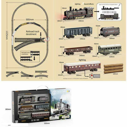 Залізниця HS 8018 A (24) звук, підсвічування, ретро локомотив, 5 вагонів, в коробці