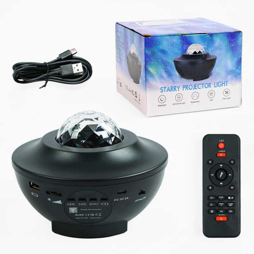 Нічник-колонка С 65401 (36) підсвічування, динамік, роз’єм для флешки, лазер, дріт для підзарядки, пульт, в коробці,