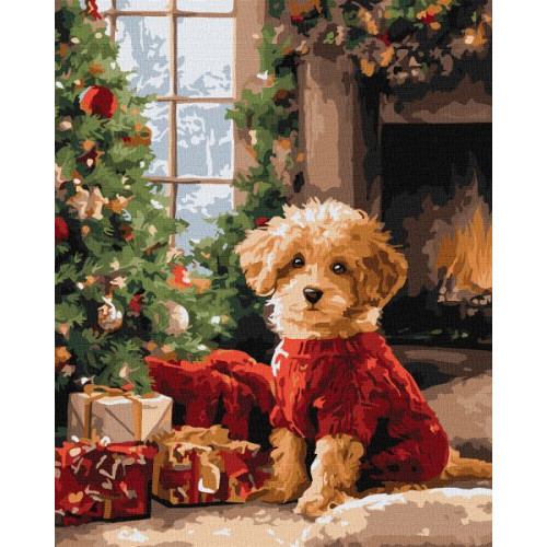 Картина за номерами "Пудель біля ялинки" 40х50см